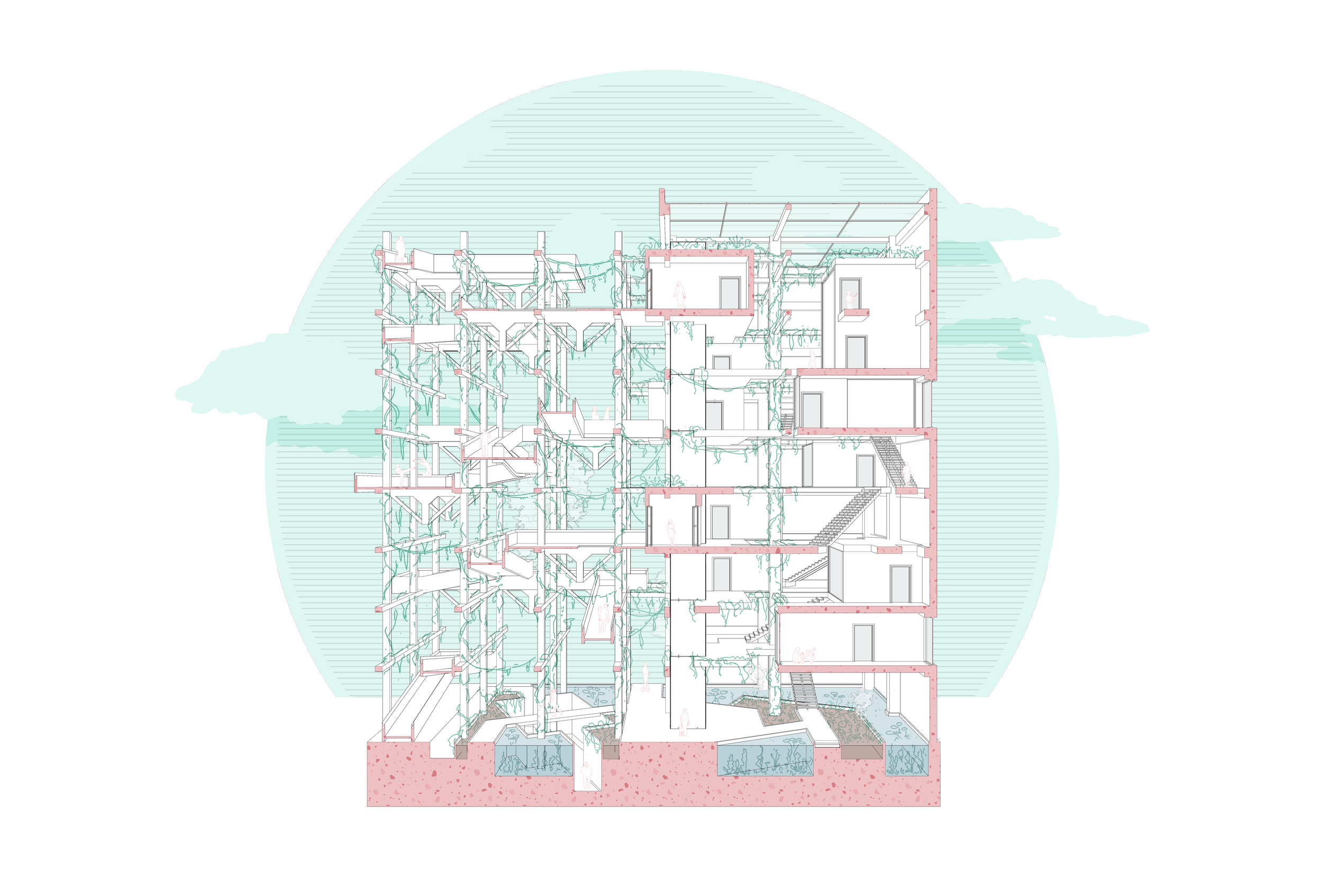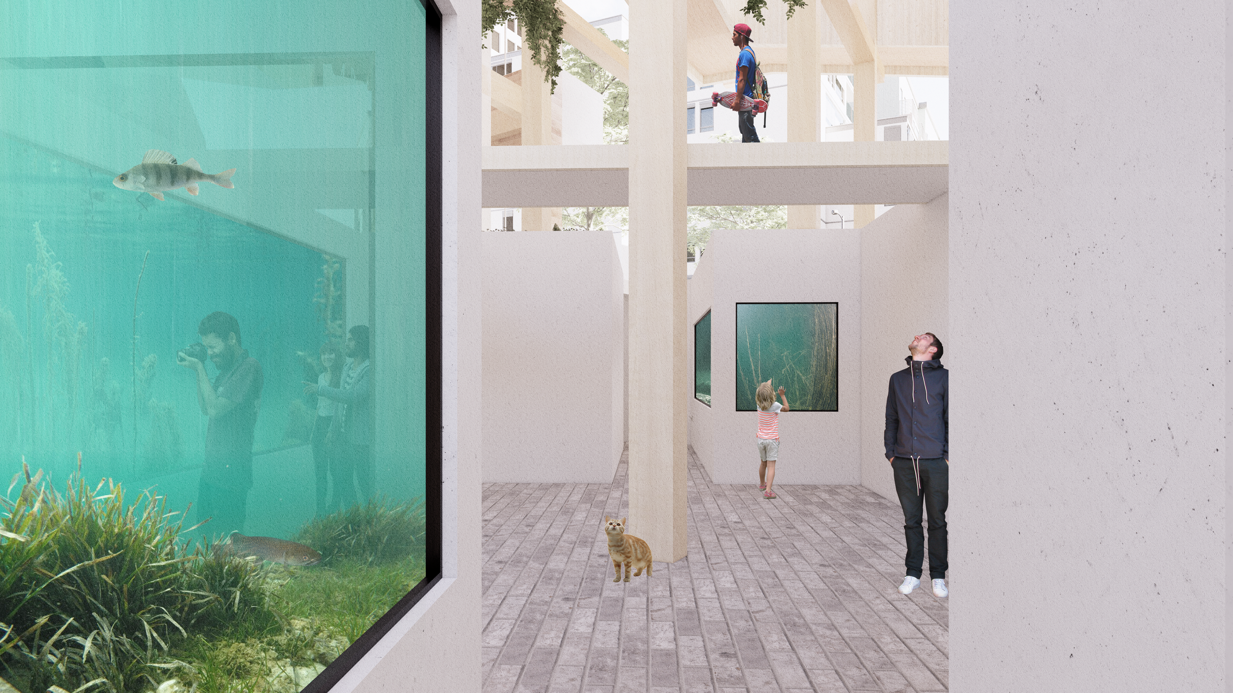 This design fades the border between building and landscape (as well as indoor and outdoor space) and honours the original shoreline by integrating urban hard-scape and natural soft-scape.