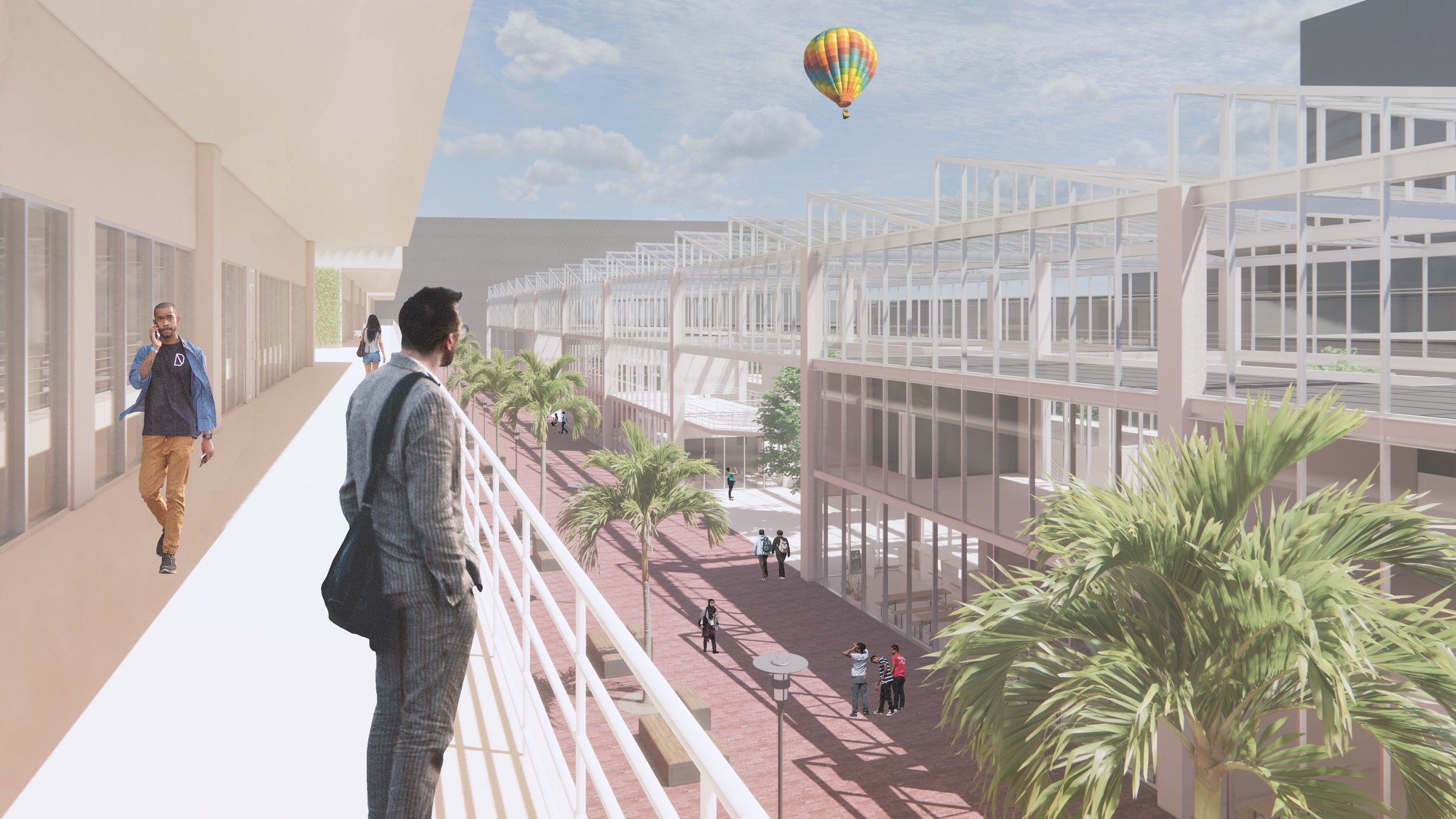 The case is located in the centre of Manukau, it is composed of two buildings, a five-story mixed-use building and a semi-open commercial use glasshouse.