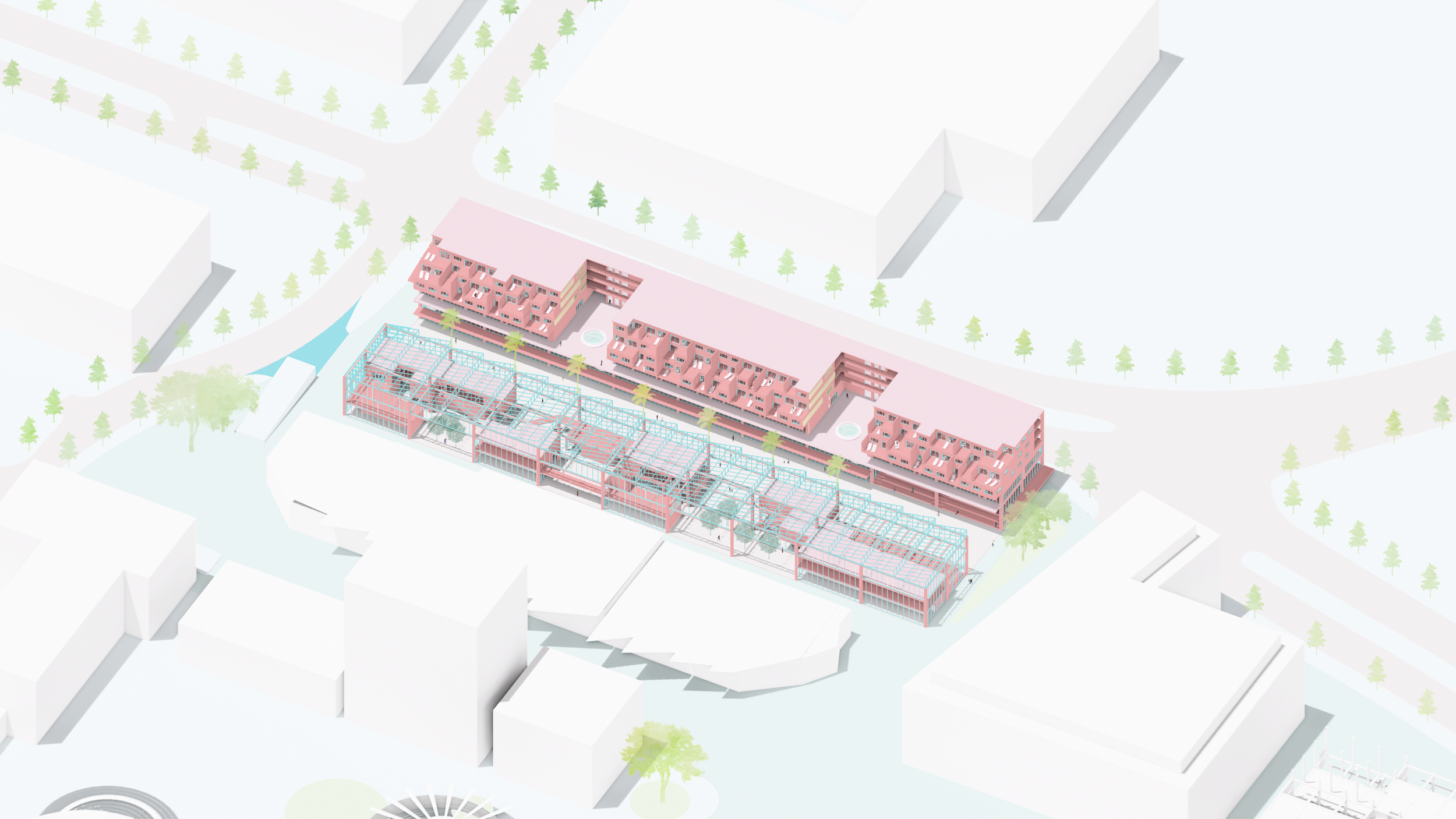 The ground floor of the glasshouse is for the catering business, the first floor is for community activity purpose. It aims at expanding and diversifying the local small business, providing more leisure and social value to enhance inhabitant experience.
