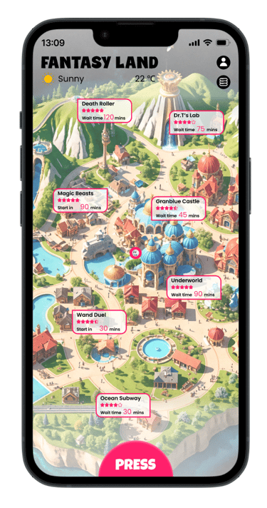 Theme parks promise fun and excitement, but common challenges can dampen the experience. Visitors often struggle with navigation, wasting time searching for attractions, restrooms, or dining areas. Long queues for rides and food add frustration while missing events or mascot meet-and-greets due to poor communication leaves many disappointed.