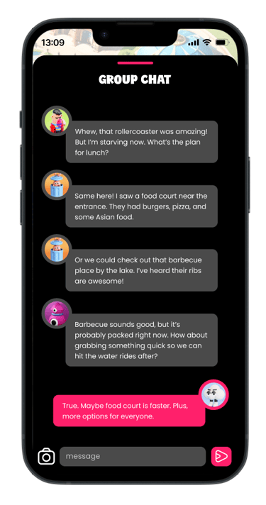 Extensive features, such as real-time navigation, dynamic itineraries, group tracking, food delivery, and park reminders, bring several UX challenges. Visitors need an app that works in dynamic environments like crowded theme parks, often requiring one-hand use while managing kids or belongings. It must also cater to diverse users, including children and seniors, while delivering real-time updates like wait times and group locations without overwhelming or confusing them.