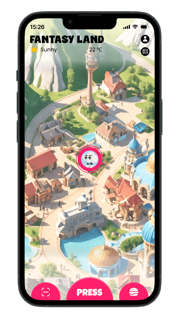 A streamlined design, offering thumb-friendly layouts, gesture-based controls, and layered map displays to focus on relevant features like nearby rides or dining options. Real-time updates ensure users stay informed, while GPS wristbands help track group members and assist those without smartphones. Accessible navigation, reminders for park characters and events, and seamless group communication tools ensure ParkPal enhances every visitor’s experience, making it the ultimate theme park companion.