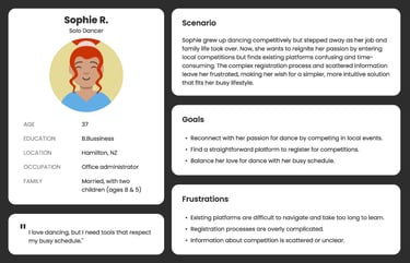 Many dancers are focused on their performances and prefer minimal time spent on logistics. Competitions require manual or fragmented registration systems (e.g., forms, emails, or separate payment portals). This leads to confusion and missed deadlines. Overloading the app with features can make it overwhelming.