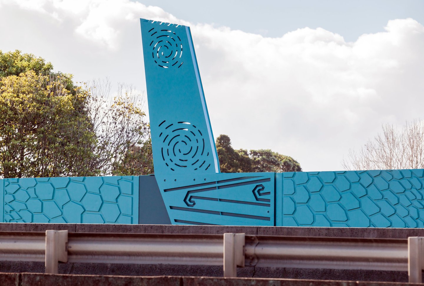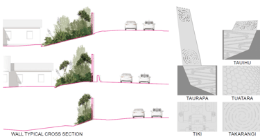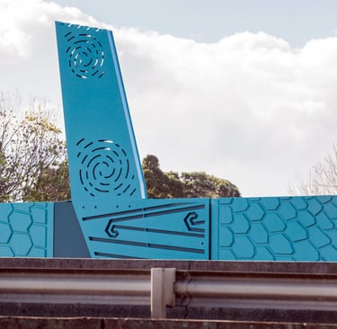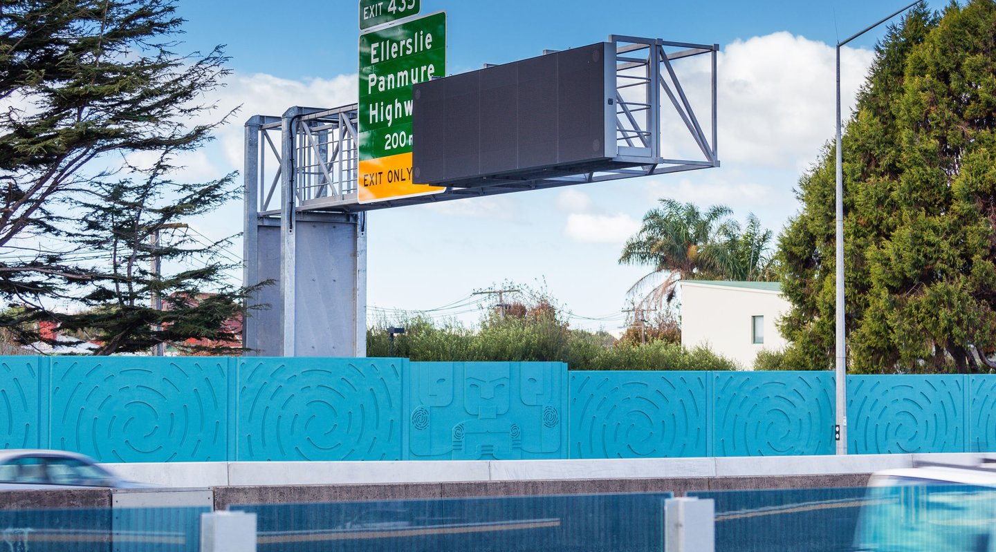 The project consists of nearly 1km of acoustic barrier, divided into 3 sections. This comprises of 233, 3m high panels which have varied extrusion depths between 30mm and 60mm, and a concrete fibre cement footing which varies in dimensions to fit the existing narrow corridor. The design and construction of the project lead innovations in stakeholder engagement processes, prototyping using 3D printing and special mould design to replicate the panel design. The panel design is directly influenced by the local Iwi and are symbols of guardianship and protection echoing the benefits of the acoustic barrier. The narrative of the design depicts a waka within a river, represented by the motorway, transporting people such as it was in the past.